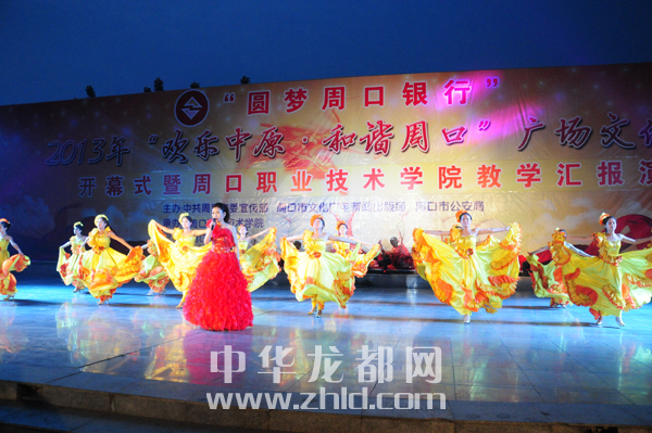 本报讯 5月9日晚7时,周口市2013年“欢乐中原·和谐周口”广场文化活动开幕,市区偌大的五一广场上,七彩霓虹点亮夜空、流光溢彩、绚烂无比,欢快的歌舞承载着“中国梦·周口梦”激情飞扬。