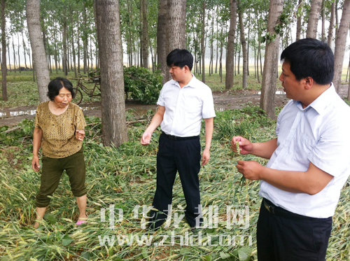 县委宣传部、马头镇干部在了解灾情。(刘俊涛 摄)