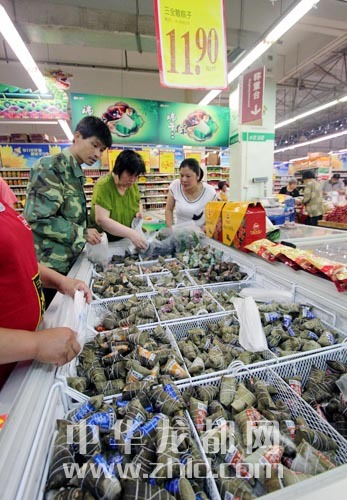 距离端午节还有一周的时间,但各大超市和大街小巷已飘起了粽香。6月6日,在周口市区的各大超市、卖场,多个品牌的粽子已摆上专柜。高档礼盒装粽子的数量明显减少,大众价位的粽子成为主流。不少超市还在柜台的显眼处,专门摆放了粽叶等包粽子用的原料供市民挑选。晚报记者 金月全 摄