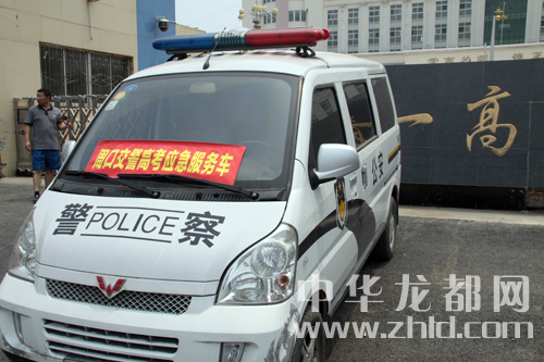 周口市交警支队在每个考点设立了高考应急服务车。