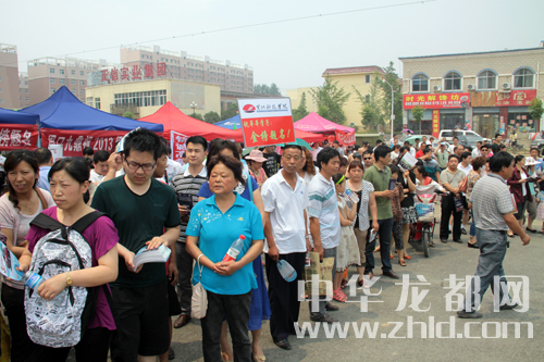 距离第一场考试结束还有10分钟家长们站在门口等候。