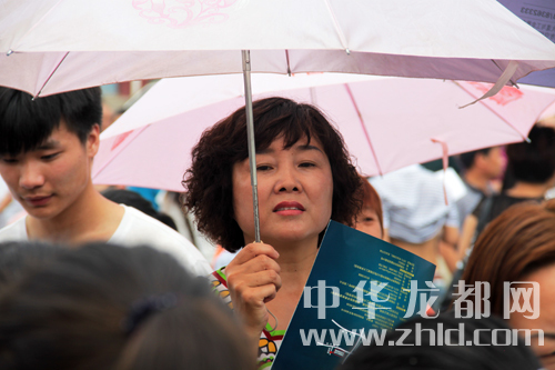 在考场外焦急等待考生考完出来的家长。(戚永/摄)
