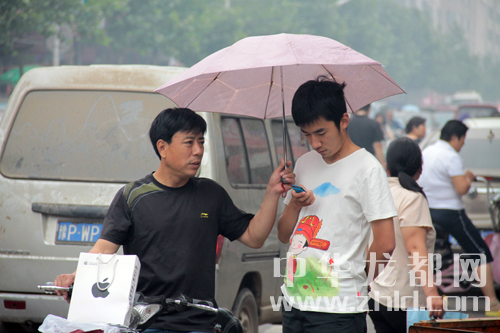 上午8点30分天空下起小雨一家长为考生撑起雨伞。