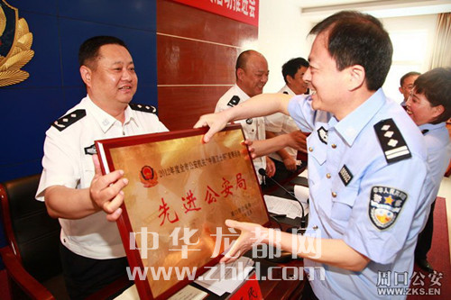 郸城县公安局长田豪杰领奖。(记者 卢好亮 通讯员 丁宇涛 摄)