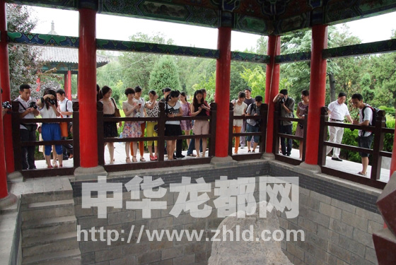 全国驻豫知名网络媒体工作者在鹿邑太清宫广场拍照