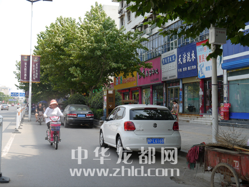 从周口联通大楼向中州大道大桥方向行驶,记者一路上看到,至少有7辆汽车停在路边,使得本就不宽阔的非机动车道显得更加狭窄。一些从此处经过的电动车、三轮车只好绕道快车道通行。