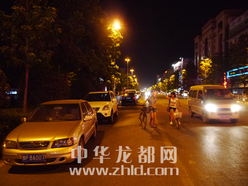 与白天相比,晚上的中州大道随意停车现象更加严重。在中州大道与西大街交叉路口,记者看到不仅非机动车道上停满了汽车,就连快车道上也停放着一排汽车,这使得从此处经过的非机动车不得不行驶在马路正中央(如图一)。