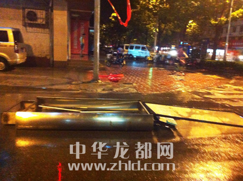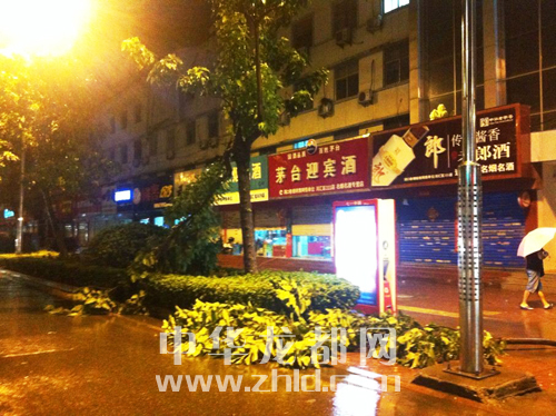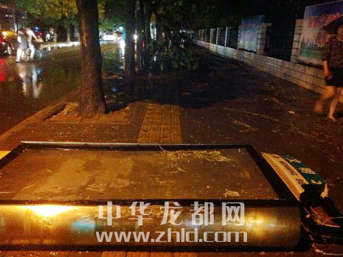 龙都网讯 (见习记者 张倩影)8月1日晚7点20分左右,我市遭遇强对流天气,导致市区七一路与文明路交叉口路段多处行道树和路标损坏。