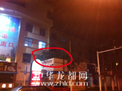 七一路与文明路交叉口一处被损坏的树木.