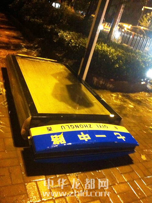 文明北路路标“躺”在马路中央.