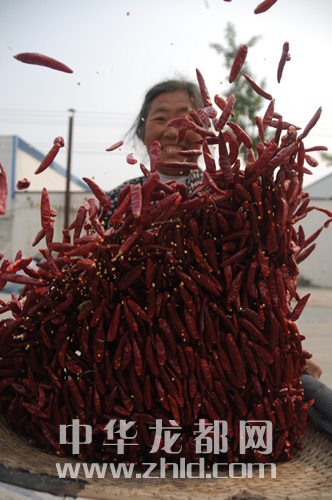 近年来,项城市贾岭镇按照“政府引导、干部示范、群众自愿、农企联动”的工作思路,把种植辣椒作为调整农业结构的特色产业来抓,形成了“市场牵龙头、龙头带基地、基地连农户”的产业化发展格局。辣椒红了,群众富了,火红的辣椒映红了百姓火红的日子。