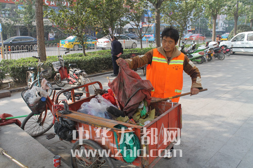 “工作虽忙碌,可想到能为营造整洁的市容环境出一份力,我心里就很高兴。”10月24日上午,在周口荷花市场北门,65岁的环卫工人王霞轩笑着对记者说。