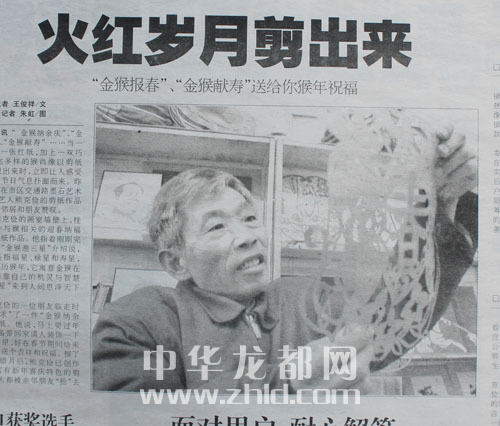 熊克俭,今年62岁,周口开关厂退休工人,自学成才的剪纸艺术家,在周口乃至全省都小有名气,擅长人物和传统图案剪纸创作。2004年1月19日,刚刚创刊的周口晚报以《火红岁月剪出来》为题报道了熊克俭的剪纸作品,十年回访,记者没想到这篇作品竟然成了激发他转行的成名作。