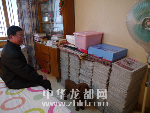 许登科是晚报的铁杆粉丝。他订报十年,收藏十年,十年的晚报被老人整整齐齐地摆放在房间里,形成了一面厚厚的“晚报墙”。 这其中包括2003年12月22日的《周口晚报》创刊号和2003年12月12日的试刊号。