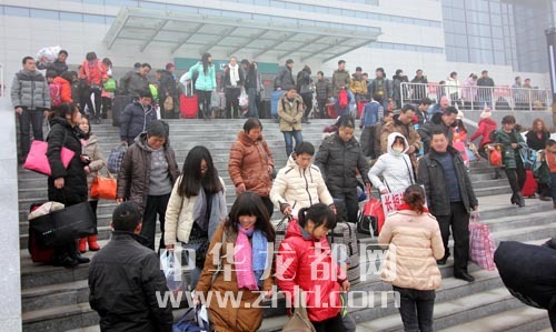 春运首日的上午,在新周口火车站,旅客走出出站口。