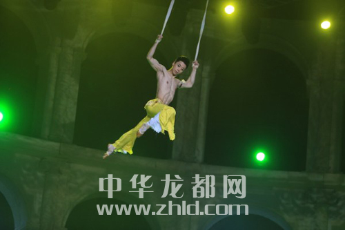 在总决赛比赛现场,尹中华彻底抛弃了此前的表演模式,他悬吊在柔软的威亚绳上,于半空展现“空中飞人”一幕,将力量、柔性与轻盈之美完美融合。如此表演,让《中国达人秀》主持人程雷大呼:“尹中华的表演让人无法呼吸!”评委赵薇更大叹尹中华仿佛换成了另一个人,“你每一次表演都能让我感到很惊喜,看着你在空中飞,我很害怕,但非常美,简直就像阿凡达的感觉!”