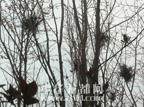 “这都是白鹭筑的巢!”看到记者很好奇,王海树介绍说,“从2004年开始,这里每年都有万余只白鹭来此繁衍生息,这些鸟巢都是白鹭离开后留下来的,再过一段时间,到了4月中旬,白鹭就会重新回到这里繁衍生息,一直到10月份后,白鹭才陆续离开这里,迁徙到其他地方过冬。到了第二年春天,白鹭又会回到这里生活。”