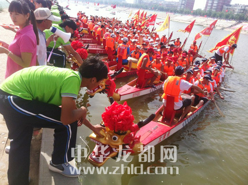 龙都网讯(见习记者 张倩影)5月27日上午,2014周口首届中华龙舟赛启动仪式隆重举行。启动仪式后,200米直道竞速预选赛随之开始。