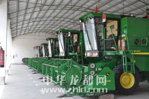 昨日,西华黄泛区农场麦田里麦浪滚滚,即将成熟的小麦黄橙橙、金灿灿,一派丰收在望的景象。农场里各种大型收割机械也已擦拭一新,整装待发。(记者 王映 摄)