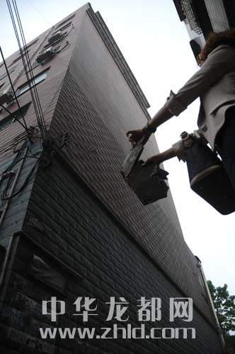 昨日,记者来到周口市区七一路与工农路交叉口西侧的周口市工信局办公楼。记者注意到,这是一栋临街楼,其中一楼、二楼是一家正在营业的药店。楼东面是一条胡同,穿过胡同是周口市工信局家属院。这条胡同是居民们进出的唯一通道,脱落水泥块的地方就是胡同的正上方的楼顶。记者看到,接近楼顶的外墙上,镶嵌着两行水泥制作的装饰物。脱落的水泥块就来自这种装饰物。