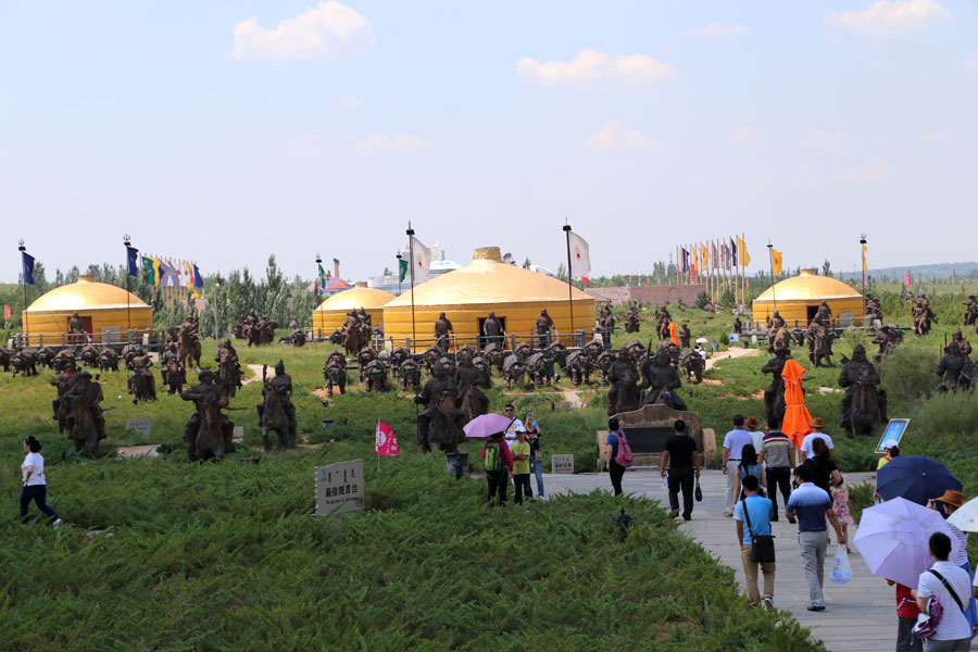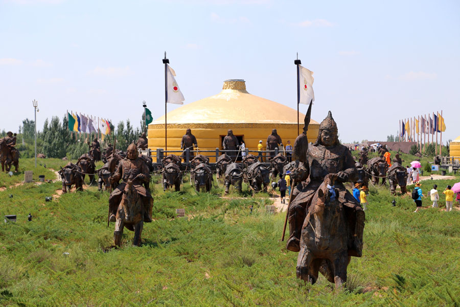成吉思汗陵旅游景区,位于内蒙古鄂尔多斯伊金霍洛旗,是世界上唯一以成吉思汗文化为主题的大型文化旅游景区。景区以成吉思汗历史文化旅游、成吉思汗祭祀文化参与、蒙古汗国宫廷文化体验,构建了成吉思汗祭祀区、历史文化旅游区和天骄浩特娱乐区三大核心区域。在成吉思汗陵旅游景区,一处一成景,处处似乎沾染英雄气概,至成陵,自成英雄。在这里你不仅可以领略到独具特色的蒙古族历史文化,还可以感受到达尔扈特人庄严神秘的祭奠,走访具有古老风格的蒙古族民俗村,还可以参加如梦如幻的草原篝火晚会,参观精彩激烈的那达慕大会,欣赏极具民族特色的《鄂尔多斯婚礼》和以成吉思汗文化和蒙古族文化为主题的大型民族舞台剧《成吉思汗大典》和《永远的成吉思汗》。