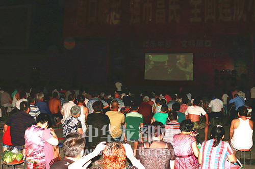 8月20日晚,广大市民在五一广场观看电影《建党伟业》。
