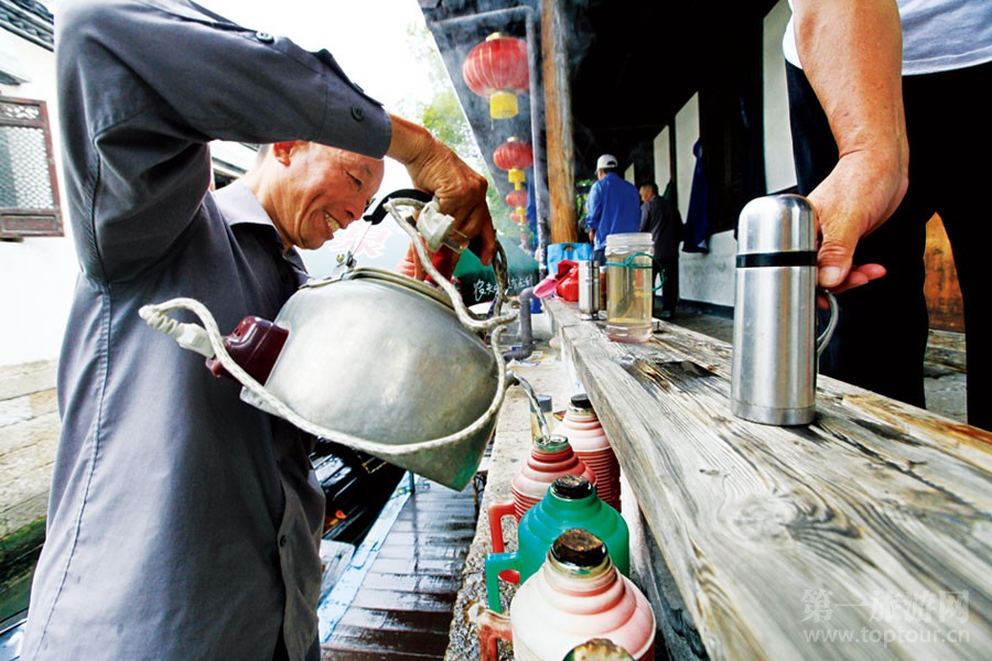 船工们的工作很辛苦,每天早上,他们都会灌上一暖瓶开水,这样可以喝一天。