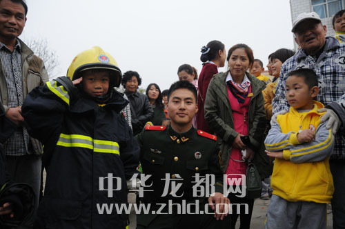 11月9日,在周口市消防支队,一名孩子穿上消防服后,不由地敬了个军礼,表示长大了也要当名消防员。当日,周口天才幼儿园的孩子们在老师和家长的陪同下,走进周口市消防支队特勤中队,学习消防安全知识。晚报记者 朱海龙 摄