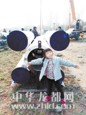 图二:一名小朋友在“长征二号F运载火箭”模型前留影
