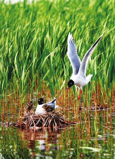 车子在芦苇中穿行一个多小时之后,前面突然出现一个大门,上边写着“双台河口国家级自然保护区”的字样。车被挡在门外,门岗看到刘德天后,车才被放进去。刘德天告诉记者,因为过去人们的保护意识不强,捡鸟蛋、打鸟,让本来就珍贵的黑嘴鸥越发稀少。开辟核心保护区,就是要更好地保护湿地不遭人为破坏,让更多的鸟儿在这里纵情飞翔,安家落户,让黑嘴鸥能从容的在这里生儿育女,不被人类过多打扰。