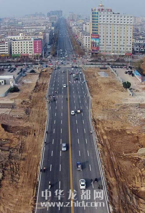 昨天,周口晚报“周晚一号”航拍飞行器拍摄的打通后的八一大道。晚报记者 朱海龙 摄