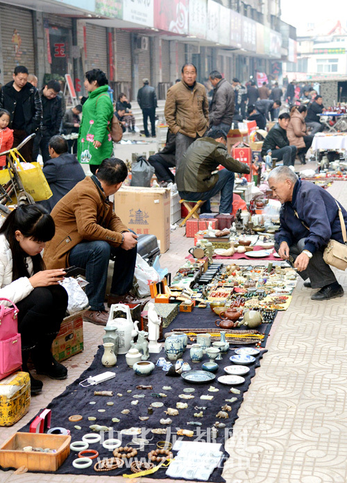 近年来,每逢周五市区男人街女人街书画古玩市场热闹非凡。这个成立不久的书画古玩市场吸引了很多周边县市甚至外省的藏品经营者和收藏爱好者。目前,该书画古玩市场拥有固定的书画古玩店铺30多家,流动商铺近千家。为举办民间藏品展示交流活动、促进规范艺术品流通和发展文化产业创造了条件,其影响和作用也越来越大。越来越多的精美藏品出现在周口人的手中,越来越多的收藏爱好者来到周口交流。