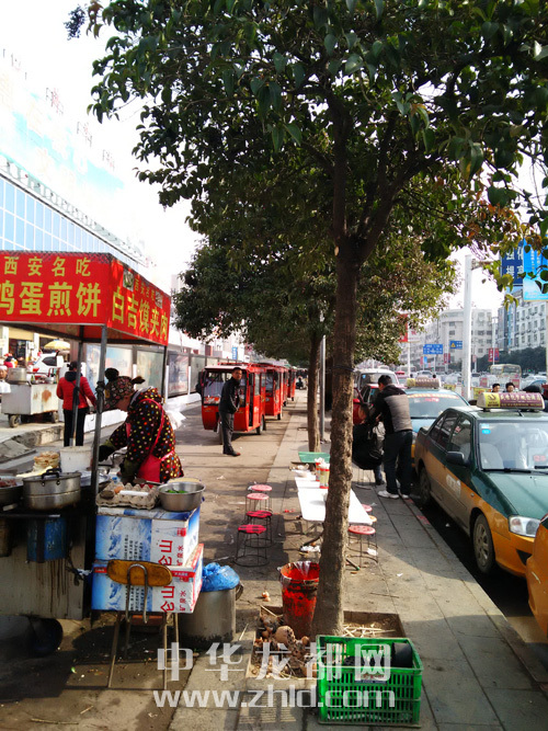 9时50分,督查组一行沿交通大道向西前住川汇区运管所具体负责的另一个执法卡点——荷花汽车站门前,刚驶过中州大道,就看到几辆红色三轮车一字排开(图③)停靠在汽车站东边的非机动车道上,一辆交通执法车就停在荷花汽车站门前,两者相距不足50米。看到督查人员后,两名交通执法人员才从车上下来。面对为啥不去查扣这些三轮车的询问,其中一名执法人员明确表示,没有看到三轮车载客营运,他们没有办法进行执法、查扣。