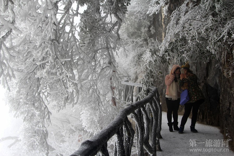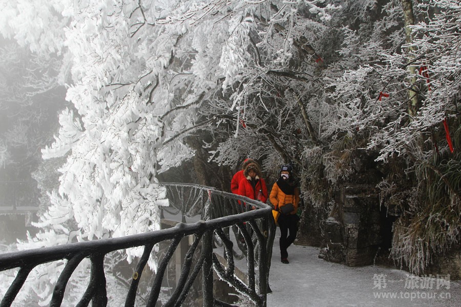 张家界天门山顶飘起了零星雪花,迎来新年寒潮后的首场雪。山顶布满了玲珑剔透的雾凇、冰花,游道也铺了一层薄薄的积雪,踩在上面咯吱作响,整座大山瞬间变成了一个梦幻童话世界。每年冬季都有很多“冰雪粉丝”专程来天门山看雪,今年也不例外。近几日,随着气温持续走低,每天都有不少游客前往天门山等雪。随着赏雪游客的逐日增多,天门山景区加大游道除冰防滑工作,同时增加景区安全巡视力度,确保游客游览安全。据天气预报显示,未来几天张家界地区将持续低温雨雪天气,天门山预计也将迎来更大的雪。天门山景区提示:雨雪天气,天门山索道照常运行,山顶玻璃栈道、森林观光缆车雨雪天气关闭,请游客朋友合理安排游程。