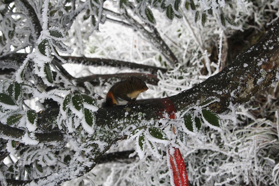 天门山雪景太美 小松鼠也忍不住出来欣赏了 丁云娟摄