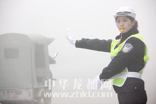 交警在雾中执勤