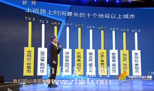 3月9日,央视财经频道《中国经济生活大调查2014—2015》发布多组数据,其中一组数据显示:中国人上班路上的时间达到55分钟,比世界平均水平长15分钟。上班路上时间最长的十大地级以上城市依次为:吉林长春、浙江衢州、重庆市、河南周口、云南昭通、湖北武汉、辽宁营口、安徽亳州、福建漳州、贵州贵阳。其中,周口以69.4分钟的上班路上时间位列第四。