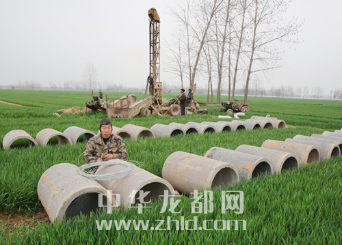 3月23日,扶沟县大李庄乡常岗村村民正在田间打井。入春以来,大李庄乡利用争取到的资金,大力实施基本农田灌溉工程,切实解决部分农田地块的浇灌难题,为夺取夏粮丰收奠定扎实基础。(黄金峰 周运动 摄)