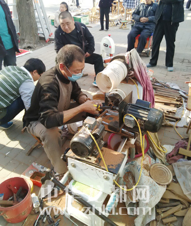 在周口市区七一路与文明路交叉口南侧,记者看到有几个现场加工制作手串的摊点,摊点旁边摆放着小型车床、圆珠摩擦器,崖柏、杉木、红松等木条及一些手串半成品。