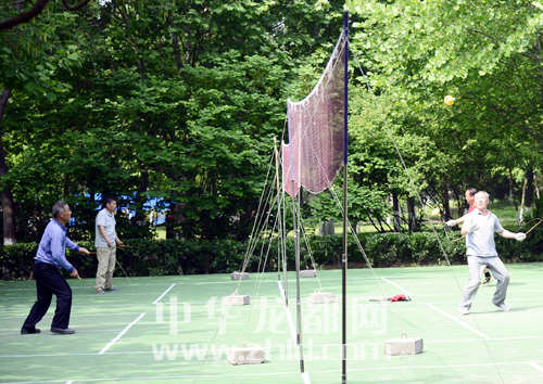 市经济开发区人民健身广场拥有空竹活动场地4个,是空竹爱好者茶余饭后的好去处。 (记者 沈湛 摄)