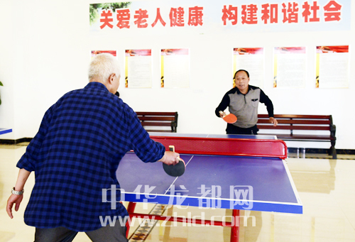 在融辉城老年人健身中心,老人们挥拍激战。 (记者 沈湛 摄)