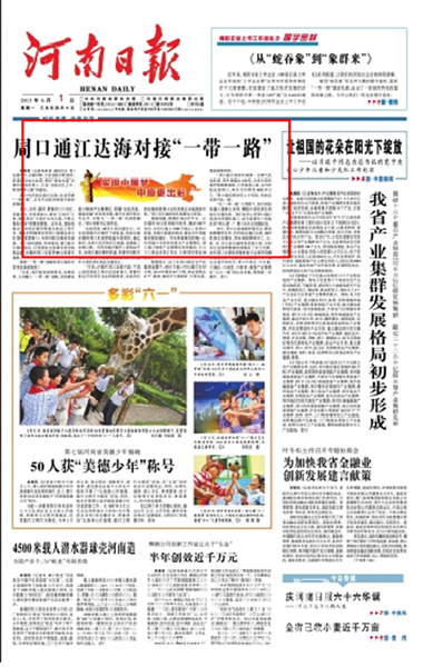 “当前,我们按照省委要求,发挥优势、主动融入‘一带一路’战略,加快建设港口物流产业集聚区,明确‘东拓西连、建港促融’的发展思路,提升区域开放合作水平,实现与‘一带一路’的深度融合。”周口市委书记徐光说。