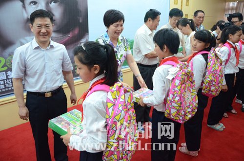 本报讯 为助力每一位贫困女孩实现美好的梦想,7月13日,2015年“圆梦女孩志愿行动周口行”启动仪式在周口饭店举行。启动仪式上,有关领导不仅为志愿者颁发了证书,为志愿者队伍授旗,还为太康县圆梦女孩代表赠送了书包和图书。