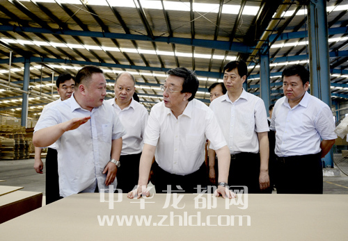 在大河林业有限公司,郭庚茂进车间、看工艺、问发展,他对企业通过调整产品结构、加强战略合作,开发差异化产品、提高产品附加值的做法表示赞许,并对企业计划开发的无醛板进行详细了解,要求加快研发进度,尽快研制成功。