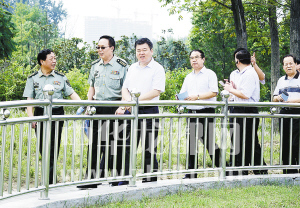 市委书记、市人大常委会主任、周口军分区党委第一书记徐光带领市委、市人大、市政府、市政协和周口军分区领导同志到全国八大国防教育主题公园之一——周口国防教育园参观指导。(记者 沈湛 摄)