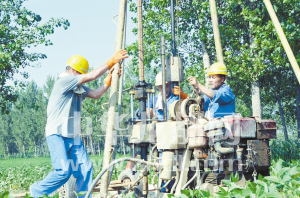 本报讯 (记者 张猛 文/图) 8月3日下午,记者在西华县田口乡看到,一座座钻机绵延数公里,工人们正头顶烈日进行开工建设前的钻探勘测工作(如图),标志着郑合高铁周口西华段建设已进入实质性阶段。