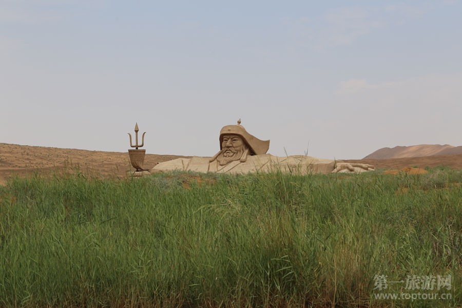 巨大的成吉思汗雕塑默默地驻守在巴丹湖边。