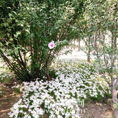 一朵朵白花入花溪,一朵红花洞口嬉,九月入画不逊春,满街的微景秀大地。