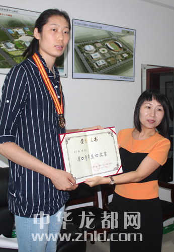 团市委为朱婷颁发荣誉证书