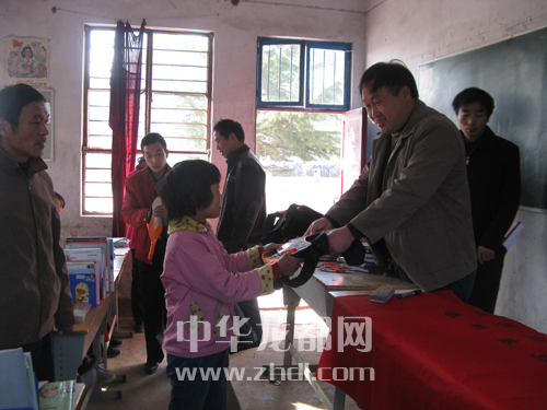 2006年,张伟为留守儿童发放慰问品。(资料图)